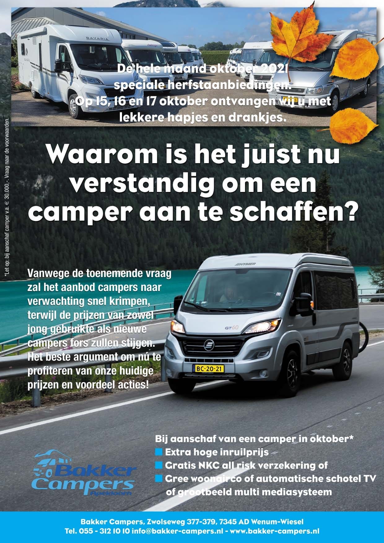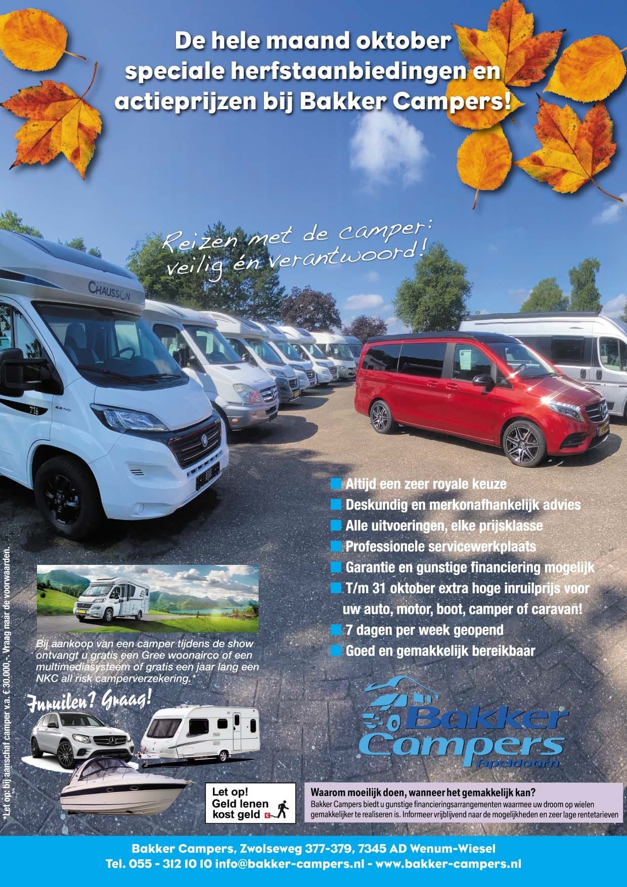 De hele maand oktober 2021 speciale herfstaanbiedingen en actieprijzen bij Bakker Campers!  op 15,16,17 oktober ontvangen wij u met lekkere hapjes en drankjes.